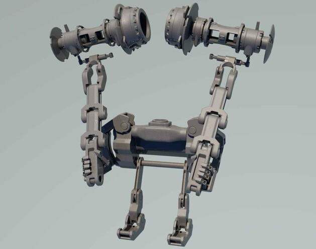 Created a symmetrical model using various parts from existing 3d models